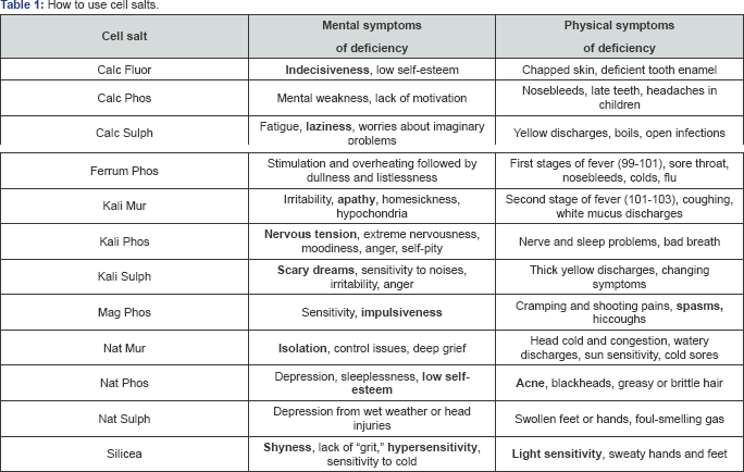 Clinical Indication of Cell Salts or Tissue Salts