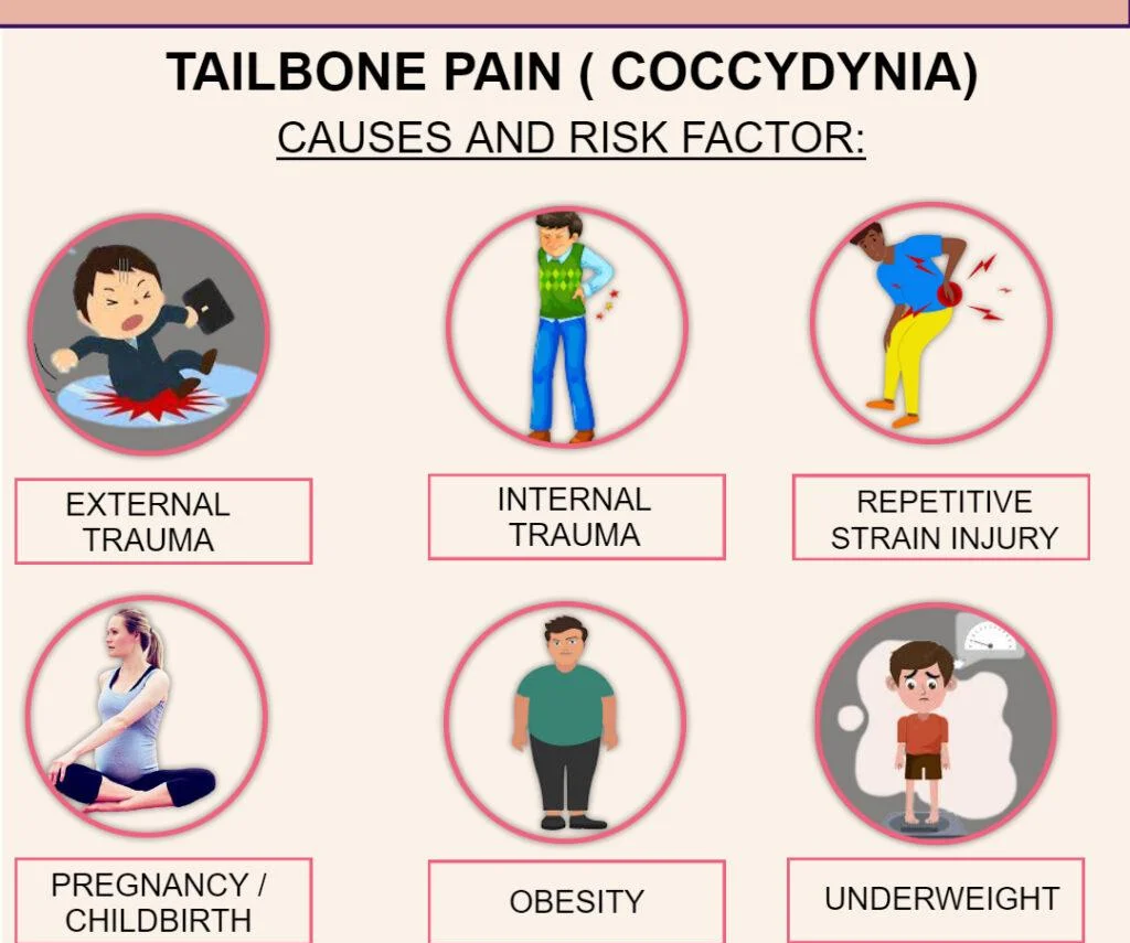 - Now the question arises who is at great risk of developing tail bone pain? Well, it can be seen in age groups and is mainly linked with acute trauma due to direct falls on the buttocks