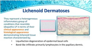 Other lichenoid dermatosis shares similar clinical presentation and tissue findings. The types of lichenoid dermatoses are mentioned below;-